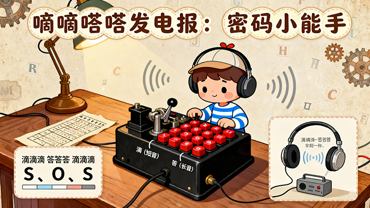 “滴滴答,答滴滴……”这是电报机在发送秘密信息!密码小能手,快来学习最简单的莫尔斯密码,用“滴”和“答”的不同组合发送和接收秘密消息,成为小小通讯专家!