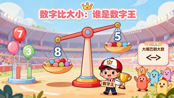 孩子们将学习:直接比较两个数字的大小;通过实物数量比较理解数字意义;认识和使用大于、小于、等于符号;建立清晰的数字大小概念,为加减法学习做准备。