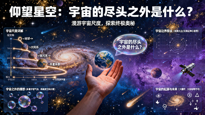 夏夜仰望璀璨的银河,我们都会心生敬畏与好奇:宇宙到底有多大?它有没有边界?如果有,边界之外又是什么?今天,我们暂时放下作业和烦恼,邀请你一起进行一次终极的想象力漫游,从地球出发,穿越太阳系、银河系,直至可观测宇宙的边缘,去领略现代宇宙学带给我们的最宏伟图景,并触摸那些连最顶尖科学家也尚在探索的未解之谜。
